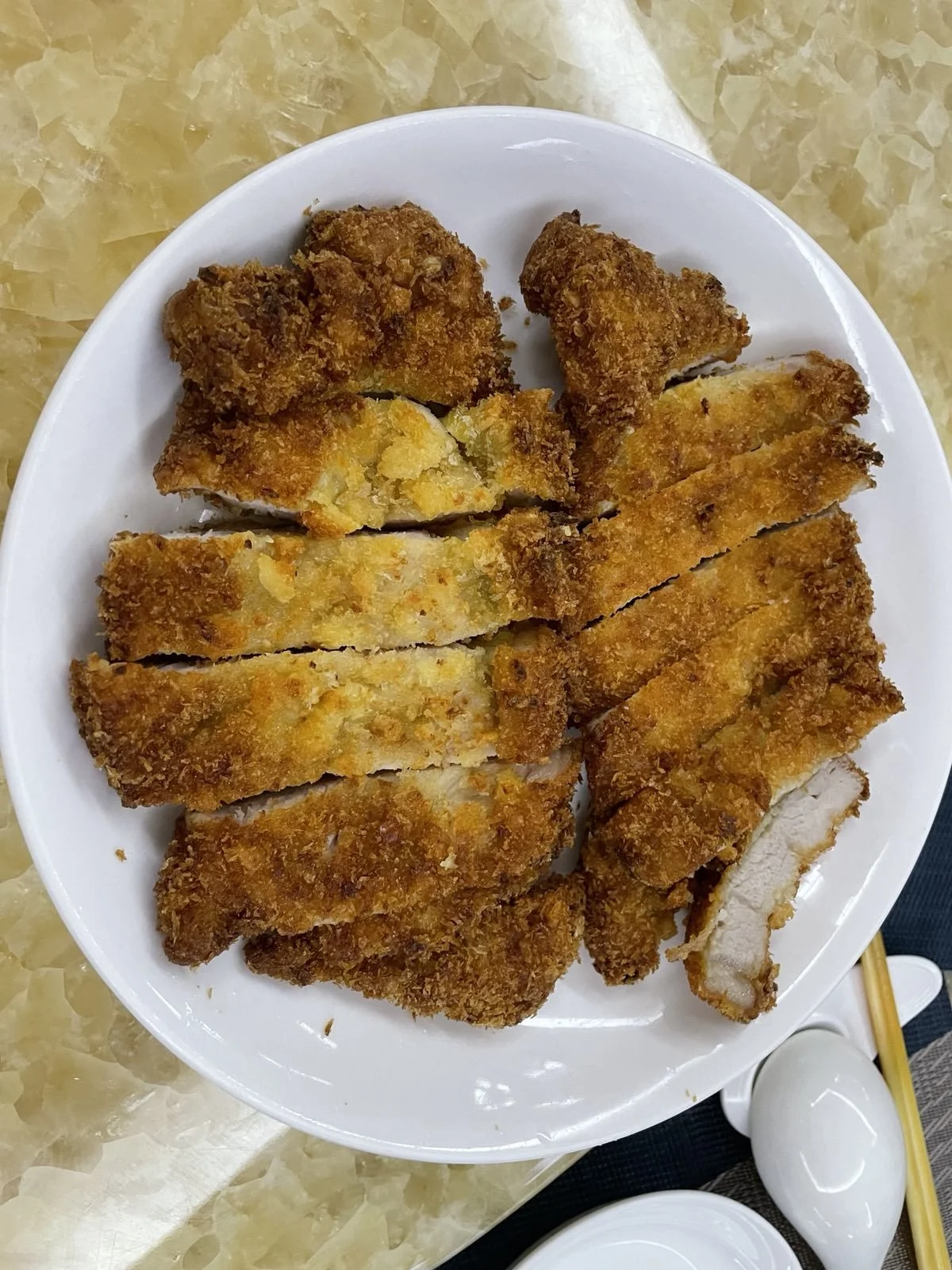 * 猪扒同吉列猪扒一樣醃法,只是不用落蛋。煎熟備用。